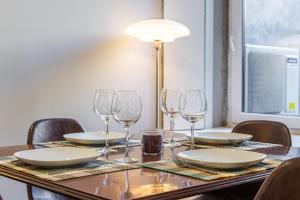 Apartmán zahrnuje jednu ložnici s jedním lůžkem, obývací pokoj s posezením včetně rozkládací pohovky a soukromou koupelnu se sprchovým koutem. K dispozici jsou také bezplatné toaletní potřeby, fén na vlasy, šampon a mýdlo na tělo. Plně vybavená kuchyň nabízí troubu, varnou desku, lednici, mikrovlnnou troubu, toustovač kávovar rychlovarnou konvici zařízení pro přípravu čaje nádobí jídelní stůl i dětskou židličku.