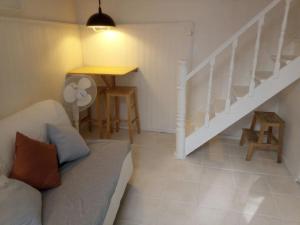 Le logement comprend une chambre avec linge de lit et serviettes fournis pour votre confort. La salle de bains est équipée d’une douche avec savon corporel, shampoing et sèche-cheveux. Le coin cuisine est doté du nécessaire pour cuisiner : plaques chauffantes, réfrigérateur et micro-ondes permettent aux hôtes de préparer leurs repas en toute simplicité.