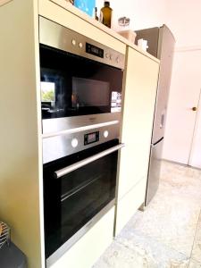 Die voll ausgestattete Küche verfügt über Backofen, Herdplatte, Kühlschrank, Mikrowelle und Küchenutensilien. Der Essbereich lädt sowohl drinnen als auch draußen auf der Sonnenterrasse oder dem Balkon mit Gartenmöbeln zum Verweilen ein. Weitere Annehmlichkeiten umfassen Rauchmelder, Feuerlöscher, privaten Eingang und Waschmaschine, WLAN ist im gesamten Haus verfügbar - ideal für Komfort und Konnektivität in ruhiger Umgebung.