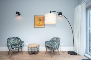 Каждый апартамент включает гостиную комнату и две или три отдельные спальни в зависимости от планировки. Стены звукоизолированы, большинство квартир оборудованы четырьмя кроватями, а меньшие — одной кроватью. Мини-кухни полностью укомплектованы варочными панелями, холодильниками, посудомоечными машинами, кухонной утварью и средствами для приготовления чая и кофе. В номерах также имеются зоны отдыха с телевизорами с плоским экраном, шкафы для хранения вещей, гладильные принадлежности, в некоторых апартаментах стоят диваны-кровати. Во всех помещениях уложен паркет.